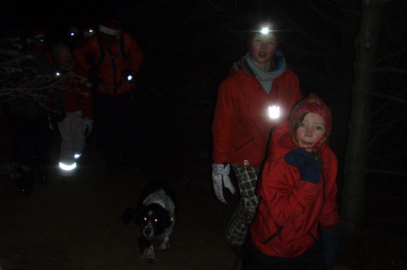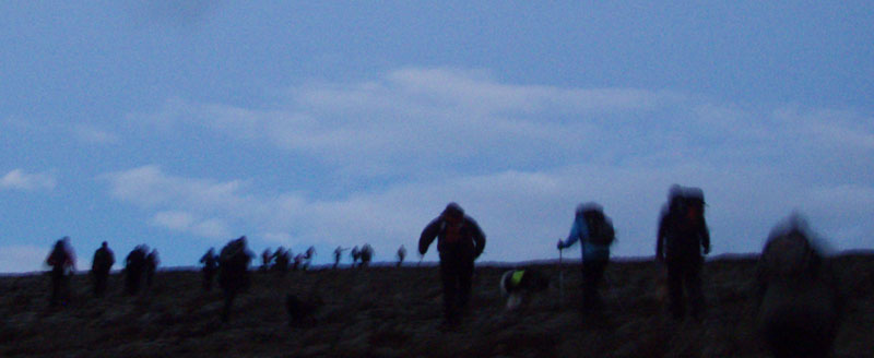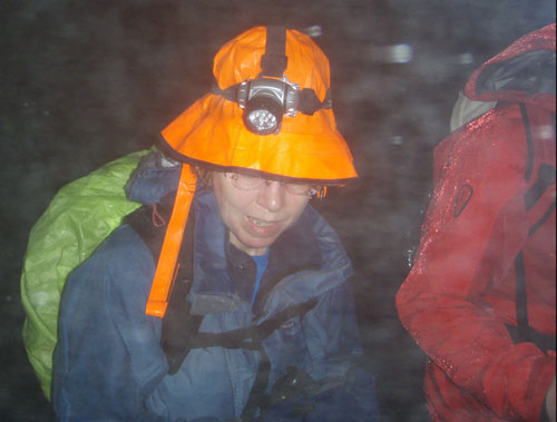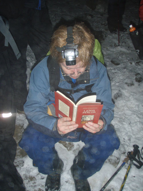 Á Geithól var komið rökkur og við klöngruðumst við næsta mann og höfuðljós um hann - loksins kom að því að nota þau eftir viðbragðsstöðu í þrjár vikur að skipun þjálfara!