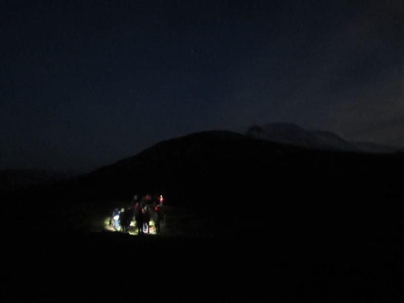 Nestisstund í botni gígsins þar sem við nutum því miður ekki stjörnubjarts himins að sinni yfir okkur.. en um þessar slóðir höfum við gengið í bókstaflega öllum veðrum nema kannski á kafi í snjó... gerum það næst í janúar 2015 !