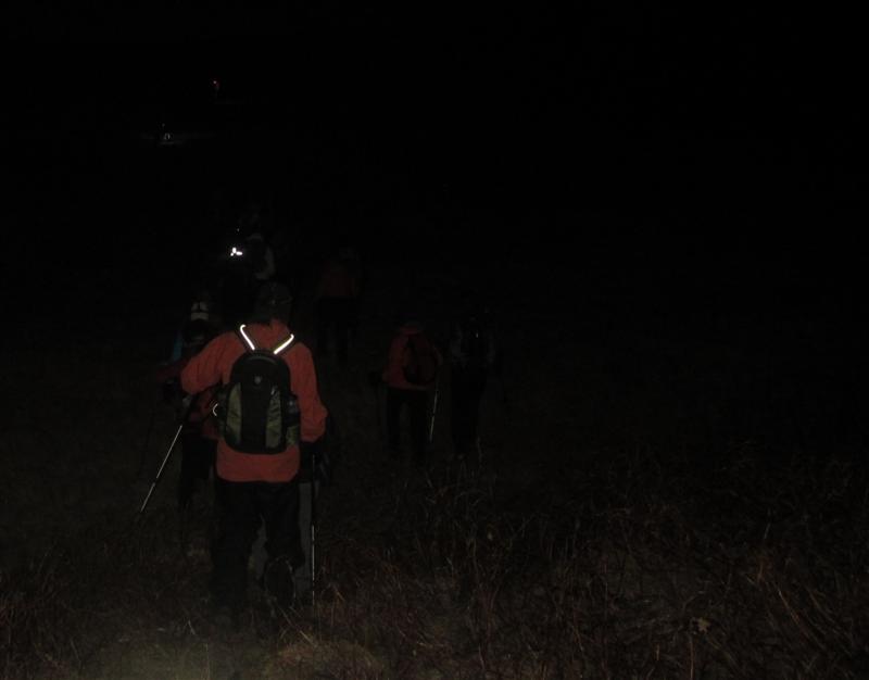 En rökkrið skreið inn smám saman og það kólnaði og blés eftir því sem ofar dró... og gamlir taktar í myrkri, kulda, úrkomu og vindi rifjuðust hálf óþyrmilega upp á tindinum í 486 m hæð... þar sem engum datt í hug að fá sér nestið sitt...nesti sem ekki komst almennilega að fyrr en í bílnum þar sem veðrið hélt okkur uppteknum alla leið í bílana þetta kvöldið... ;-)