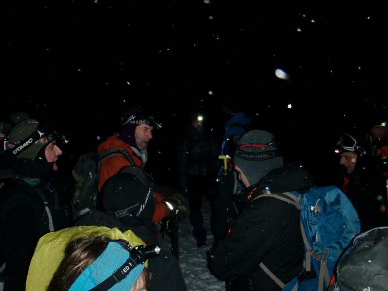 Þarna ætluðum við upp... og enduðum á þessum aftari ávala tindi sem er þeirra hæstur þarna megin skarðanna en myrkur og frost í klettunum gaf ekki færi á frekara klöngri... við bara verðum að fara einhvern tíma langa sumarkvöldgöngu um alla bollana vestan megin í dagsbirtu og góðu klöngurfæri...