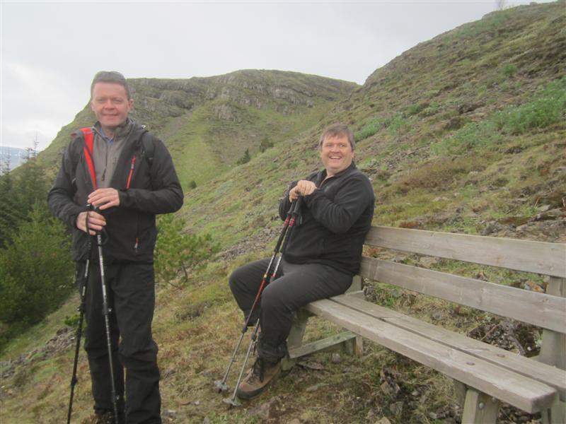 Gengið var þéttar brekkurnar upp vestan megin ofan bæjarins og mikið grín gert að þjálfara sem lýst hafði leiðinni sem "aflíðandi" :-)