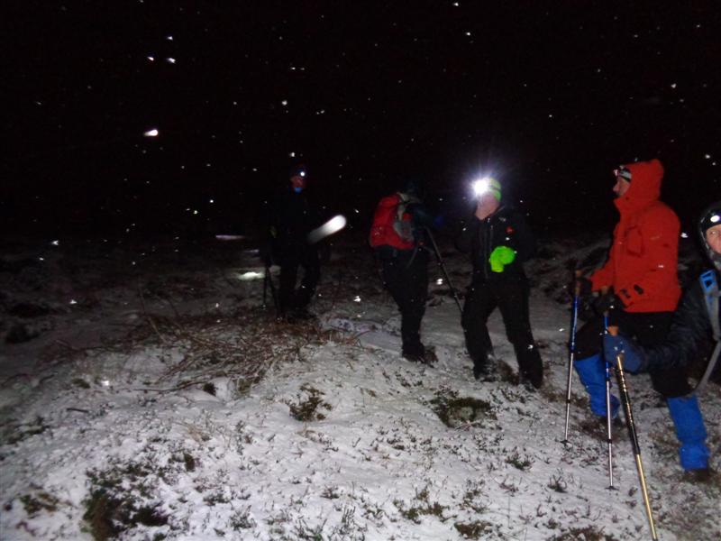 Þetta var vinaganga í "vinamánuðinum janúar" sem gaman væri að festa í sessi.... menn skulu endilega bjóða vinum sínum með í göngu þennan mánuðinn og það voru nokkrir slíkir með í för þetta kvöld... m. a. hún Alda sem er vinkona og vinnufélagi Óskar... búin að vera á leiðinni nokkrum sinnum í göngu með okkur en annað hvort verið brjálað veður, göngu aflýst eða eitthvað álíka... en nú lét hún sig hafa það... fékk vonandi jafn mikið út úr töfrum kvöldsins og við... sem fáum greinilega aldrei nóg af þessari einstöku birtu, friðsæld og kyngimögnun sem einkennir þessar myrkurgöngur þó veðrið geti aðeins nartað í mann eins og þetta kvöld :-)