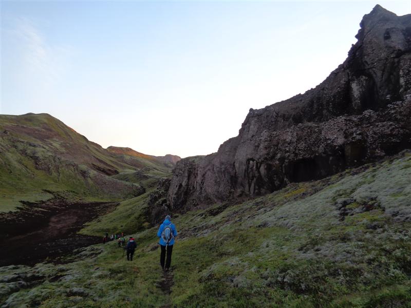 Það var varið að skyggja fljótlega í göngunni en þar sem það var ekki sérlega þungbúið slapp þetta vel með birtuna og engin höfuðljós voru notuð í göngunni...