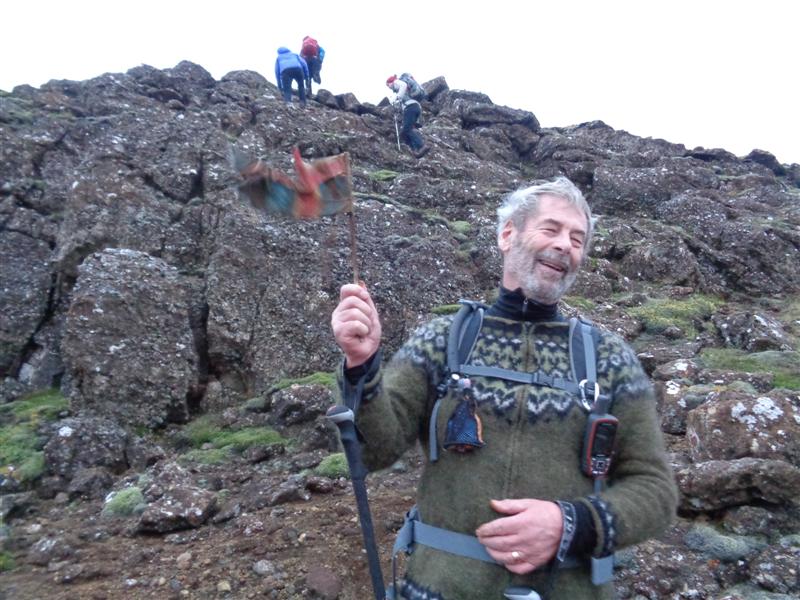 Í klöngrinu upp á Arnarfellið fann Guðmundur Jón þessar ansi vel þvældu rifur af íslenska fánanum og reyndi að bjarga því sem bjarga mátti... en það var ósköp lítið eftir af honum greyinu svo hann var látinn standa á fjallinu fyrir sína lokadaga...