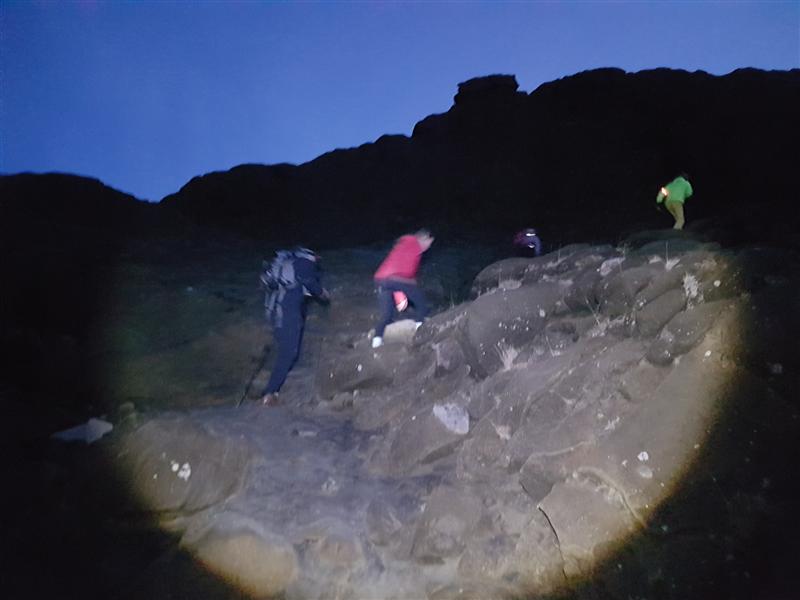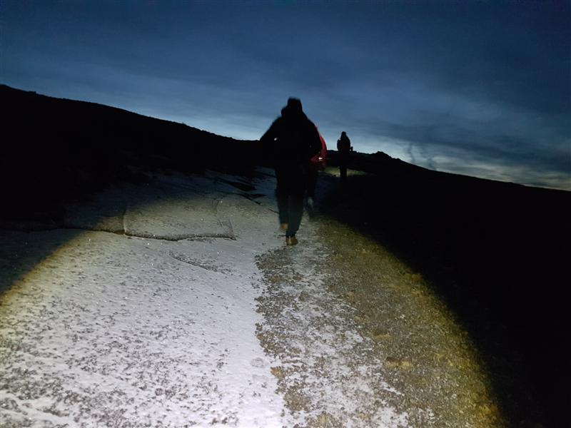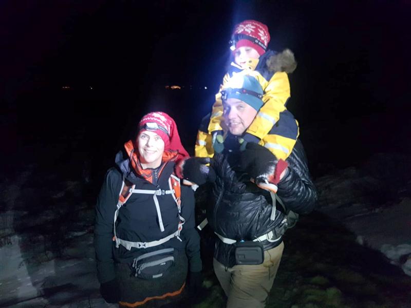 Þá reyndi á höfuðljósin... og að vera með nýjar rafhlöður í þeim... myrkrið er verra í auðu færi... fjarri byggð...