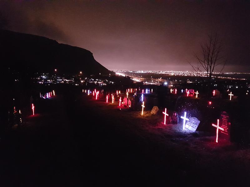 Við gengum frá sundlauginni og framhjá kirkjugarðinum og þaðan upp á Lágafellið og rifjuðum upp fyrri göngur hér um í myrkrinu með snjó yfir öllu sem hefur alltaf verið óskaplega fallegt og bjart...
