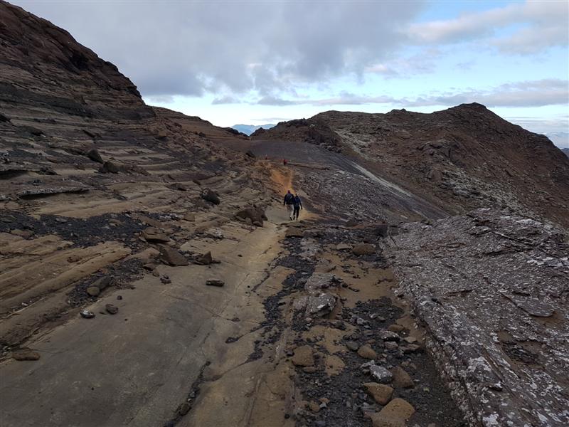 þeim kafla niður móbergið hér með rúllandi lausagrjótið um allt fann