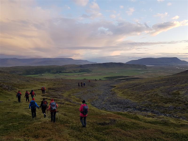 Þetta var eina erfiða brekkan í þriggja tinda göngu kvöldsins... og um leið sú fegursta...