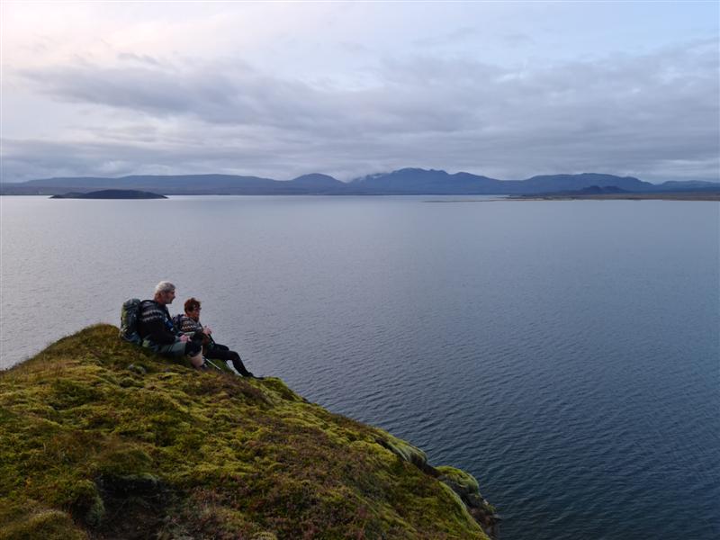 Enda vel hægt að njóta náttúrunnar og útsýnisins héðan og ofan af fjallsrananum fyrr um kvöldið...