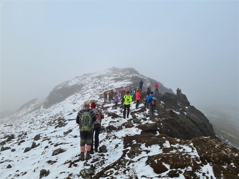 Fínasta veður til að byrja með... en þoka á efsta punkti í Skjaldbreið...
