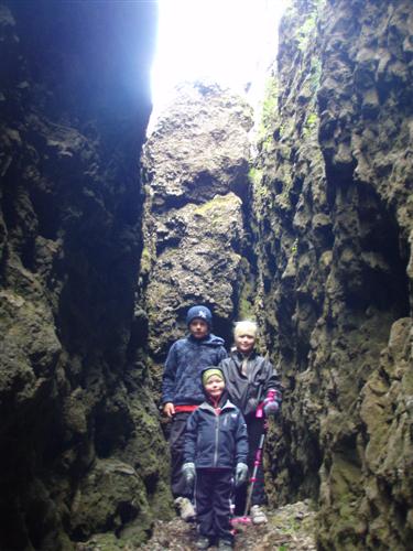 Komin í Tindagil þar sem hæð yfir sjávarmáli var 238 m sem var mun lægra en bílarnir við upphafsstað.