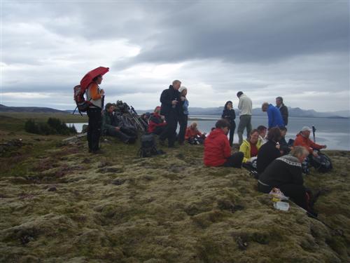 Komið var við í Stapatjörn sem lá lygn og girnileg til sunds á sandinum þar sem hópurinn var þéttur.