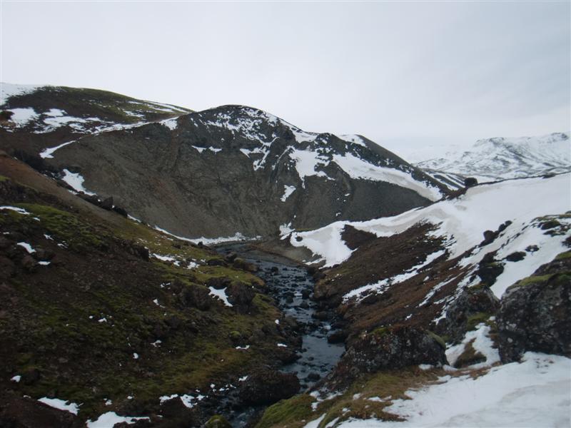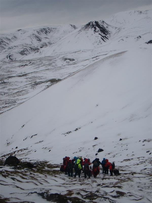 Að komast upp a hrygginn... rokið var talsvert þarna uppi en skjól var niðri í dalnum...