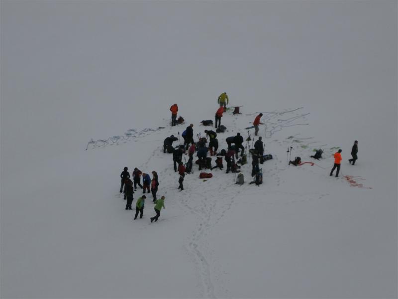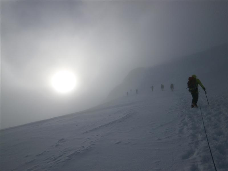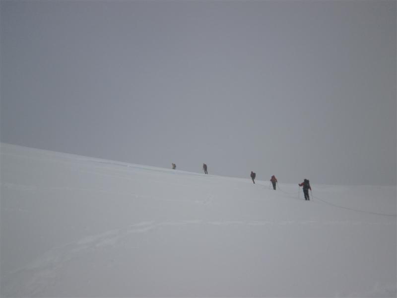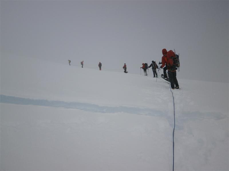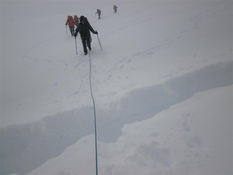 .... því erfiðleikastig ferðarinnar hafði hækkað með þessum erfiða og óvænta sprungukafla sem ásamt erfiðu skyggni...