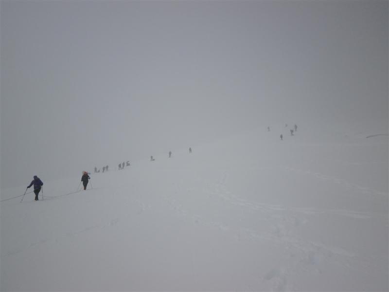 Þokan því miður spillandi skyggni sem hefði án efa einfaldað leiðarval þar sem oft var erfitt að sjá nokkuð í snjóblindunni....