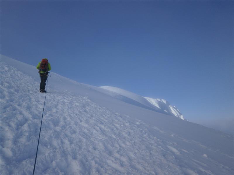 Úff, þetta var fullkomið veður... áttum við heldur að ganga þennan dag? Meiri sól, skyggni, útsýni, hiti, sviti, bruni, snjóbráð... erfitt að segja... þetta komandi slagviðri sem von var á um kvöldið á föstudeginum kom í veg fyrir að þessi dagur yrði valinn en eftir á að hyggja hefðum við kannski helst getað sagt að best hefði verið að leggja þá af stað á miðnætti fim/fös og ná þessari björtu nótt og bjarta degi áður en rigningin kom... en þá hefðum við reyndar lent í sprungunum um miðja nótt og þá var ekki komið skyggni... æj, við munum aldrei fá að vita það... þetta er alltaf happdrætti...