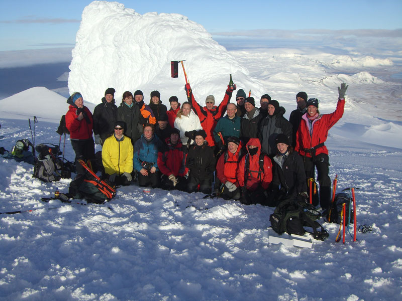 6:30 klst.Efri frá vinstri: Halldóra Á., Herdís Dröfn, Heiða, Kári, Hilma, Helga Sig., Halldóra Þ., Ingi, Þorleifur, Guðbrandur, Grétar Jón, Roar,Guðmundur, Örn og Bára. Neðri frá vinstri: Sigríður E., Soffía Rósa, Alda, Íris Ósk, Þorbjörg, Rannveig og Ásta. Flestir á leiðinni á Hvannadalshnúk eftir svona dag...