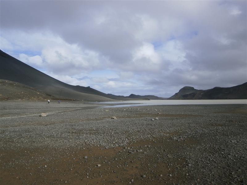 Viš gengum eftir įrfarvegi jökulkvķslarinnar sem nś var nįnast žurr... lķtiš aš brįšna meira ķ jöklinum žaš sumariš...