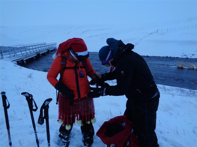 Það getur verið flókið að vesenast í búnaðinum í vetrargöngunum :-)