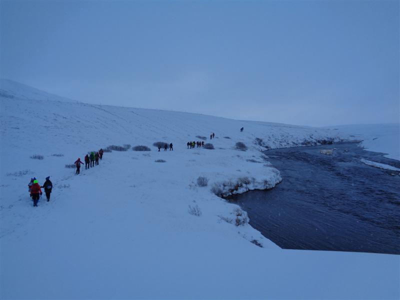 Rökkrið seig á í lok göngunnar og við höfðum fínan tíma til að fara í pottinn...