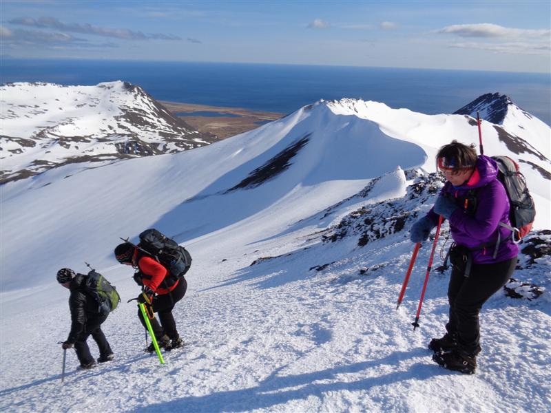 Hrútsfjallstindafarar hæstánægðir með alvöru broddaþjálfun dagsins...
