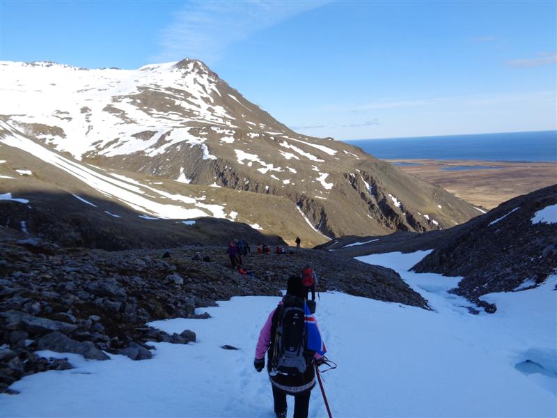 Litið til baka upp Smjörhnúk (Rauðakúlur)...