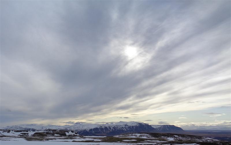 Skýjafarið síbreytilegt og sólin að brjótast smám saman fram...