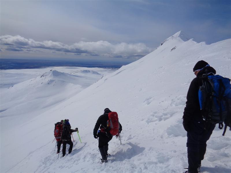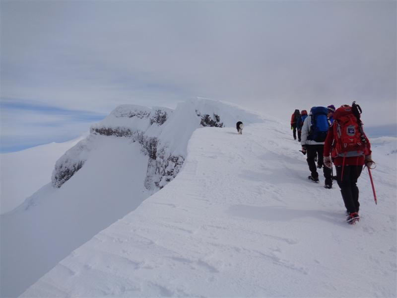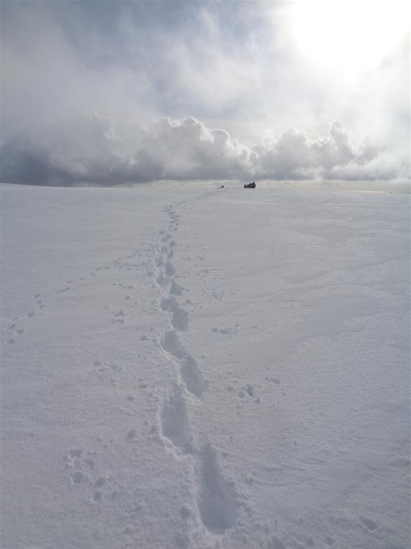 Meðan fyrri hópurinn brunaði upp eftir ofan á snjónum...