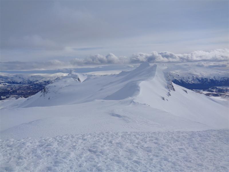 ... og renna sér yfir tindana sem við gengum deginum áður...