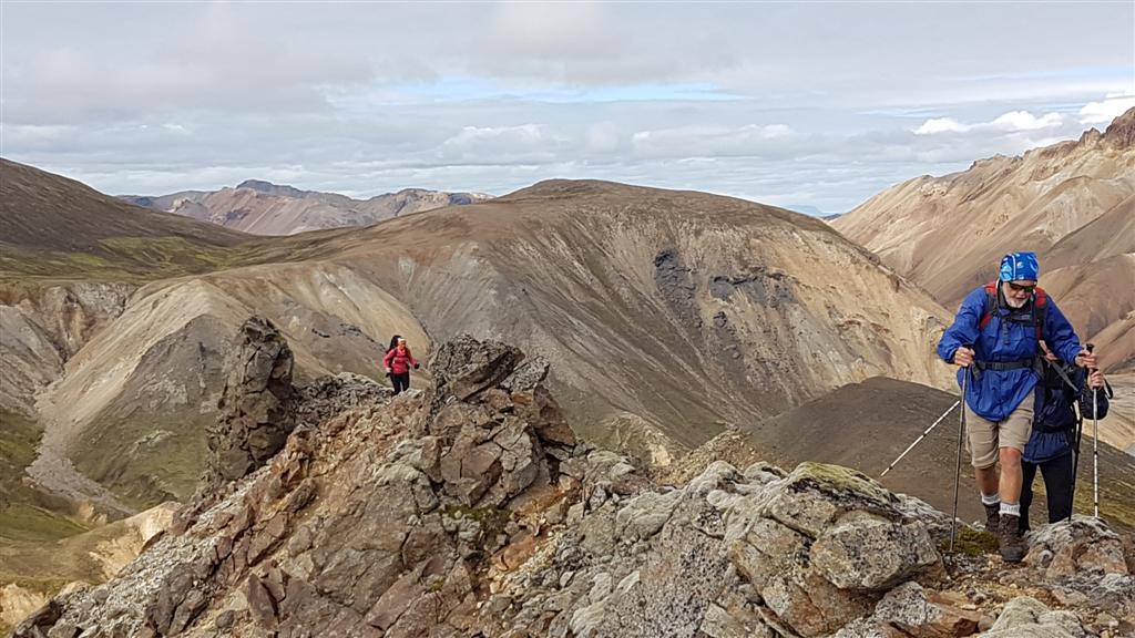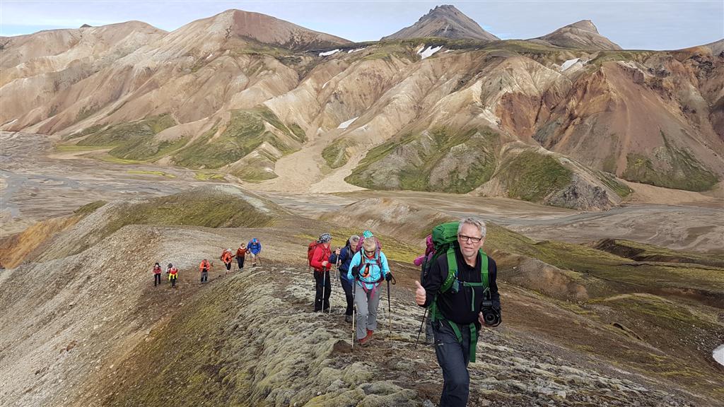 Leiš dagsins... į röskri göngu hefši veriš hęgt aš ganga hęrra upp į Barm og eins upp į Halldórsfelliš sjįlft... smį eftirsjį af žvķ... en žį hefšum viš ekki getaš notiš Hryggsins milli gilja eins vel... Hryggurinn milli gilja var svo genginn allur frį noršri til sušurs og telst žaš fegursti kaflinn žennan dag aš mati žjįlfara... Gręni hryggurinn og sį brśni skreyttu endalok hryggjarleišarinnar įšur en snśiš var viš og teljast žeir įn vafa eitt žaš sérstakasta sem viš höfum augum litiš įsamt Žrengslunum sjįlfum žar sem litadżršin er įn efa sś mesta ķ ķslenski nįttśru aš öllu meštöldu... heišin ofan viš Sveinsgil var eini kaflinn sem ekki var stórkostlegur hvert einasta andartak eins og allur hinn hluti göngunnar og Halldórsgiliš kom į óvart sakir feguršar, fjölbreytileika og žrengsla ķ hrįleika sķnum eftir alla litadżršina... sem var naušsynlegt til aš koma okkur nišur į jöršina svo viš vęrum hreinlega ķ ökufęru įstandi eftir žennan vķmukennda dag ķ Frišlandinu aš Fjallabaki :-)