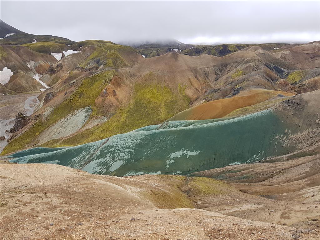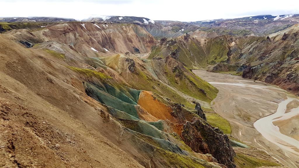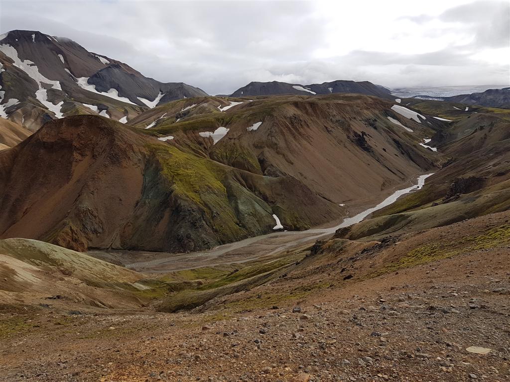 Uppi į brśninni tók aš blasa viš Jökulgiliš sjįlft ķ allri sinni dżrš og fjöllin öll ofan viš Landmannalaugar...