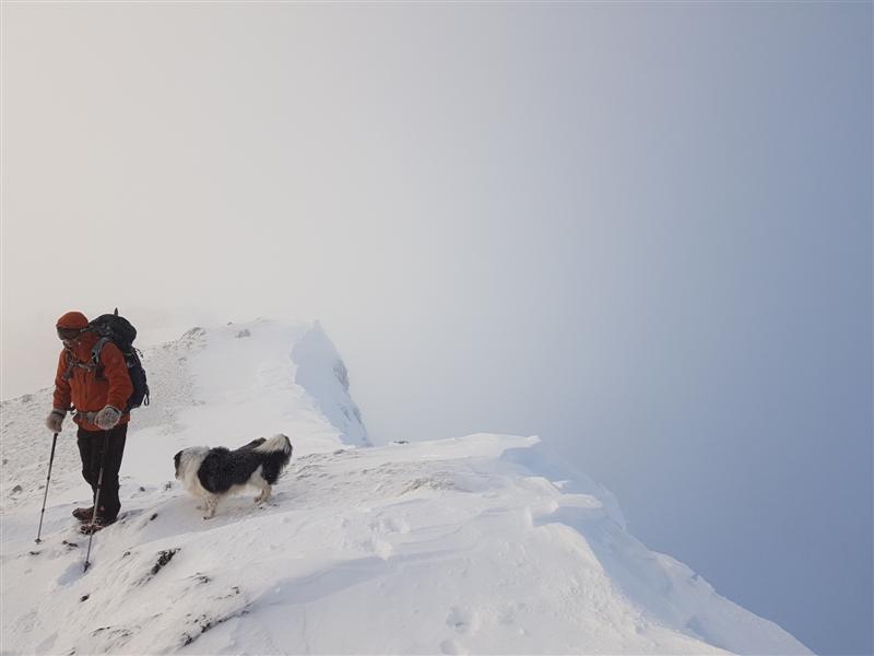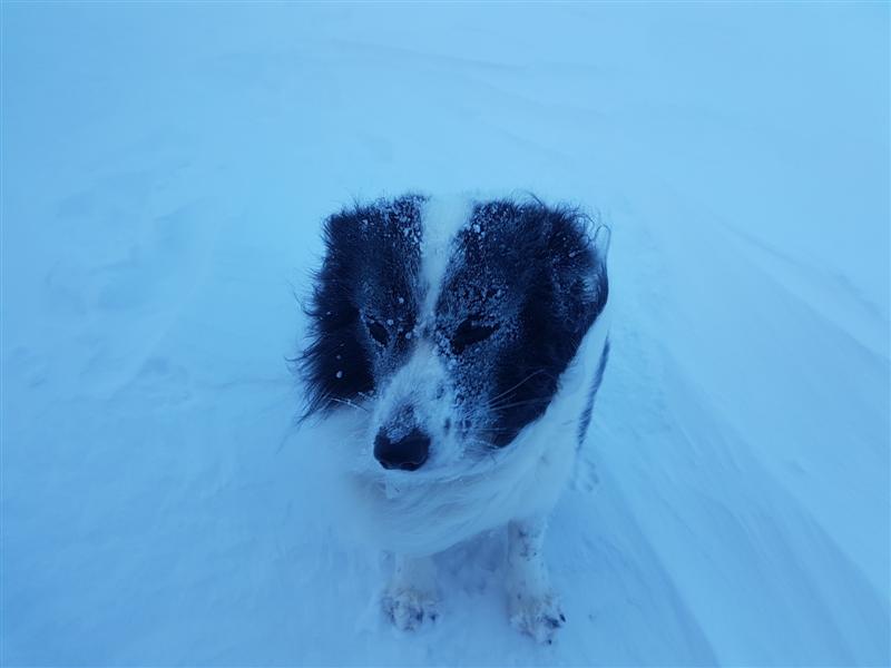 ...og Bónó kominn ofan ķ bakokann hjį Jónasi Orra į leiš yfir į tind tvö... hrķšskjįlfandi af kulda...