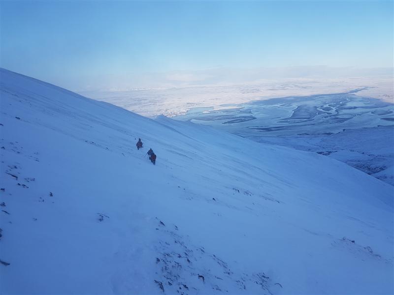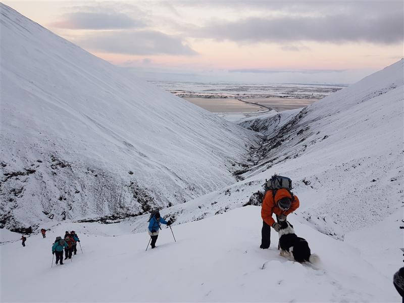 Brekkan var žétt upp og reyndi vel į... lengsta brekkan upp ķ mót žennan dag... Batman passar hópinn vel... og kannar alltaf reglulega meš sķšasta mann į milli žess sem hann fylgir foringjanum viš rötun...
