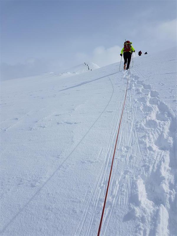 Hér greiddist vel úr hópnum þar sem menn voru misfljótir að leggja af stað niður brekkuna og misfljótir að fóta sig niður...