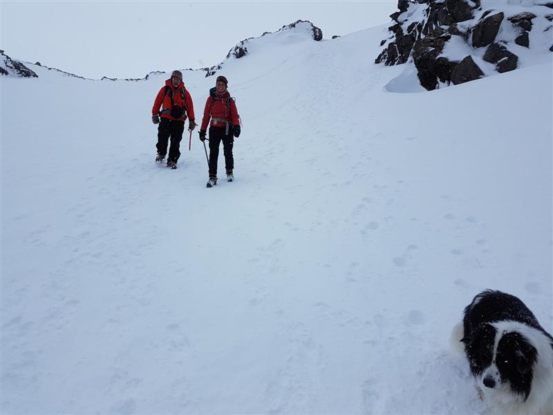 Svo kom svellað færi... undir ferskum snjónum var svell og við fórum að renna svo það var ekkert annað í boði en brodda sig...