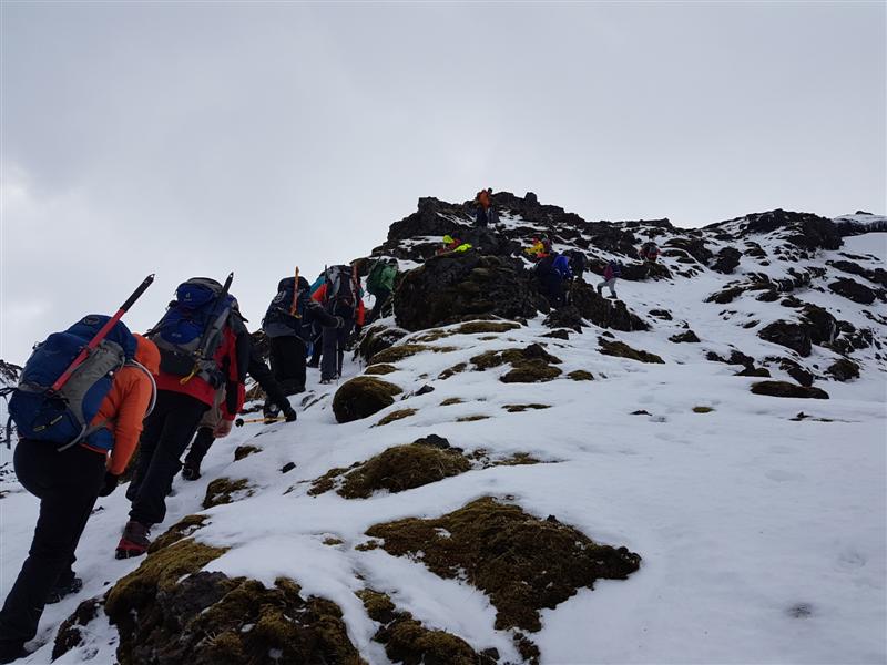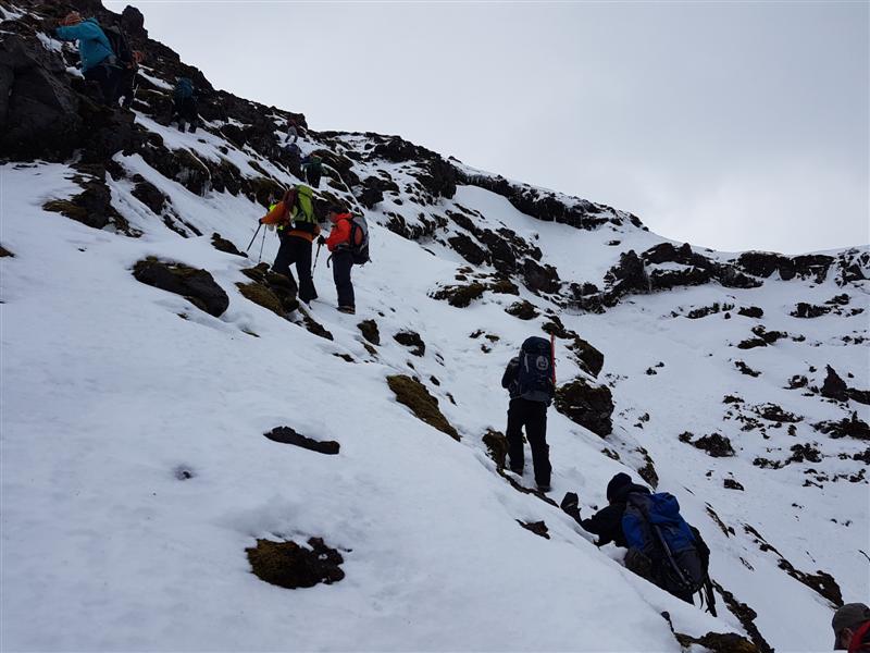 Gangan byrjaði því strax á fallegri leið og heilmiklu klöngri upp brattar skriður og brekkur hryggjarins...