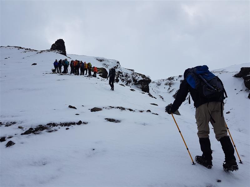 Skúli og Örn fóru á undan að finna góða leið um klettana því við áttum von á svelluðu færi í þessum kulda...