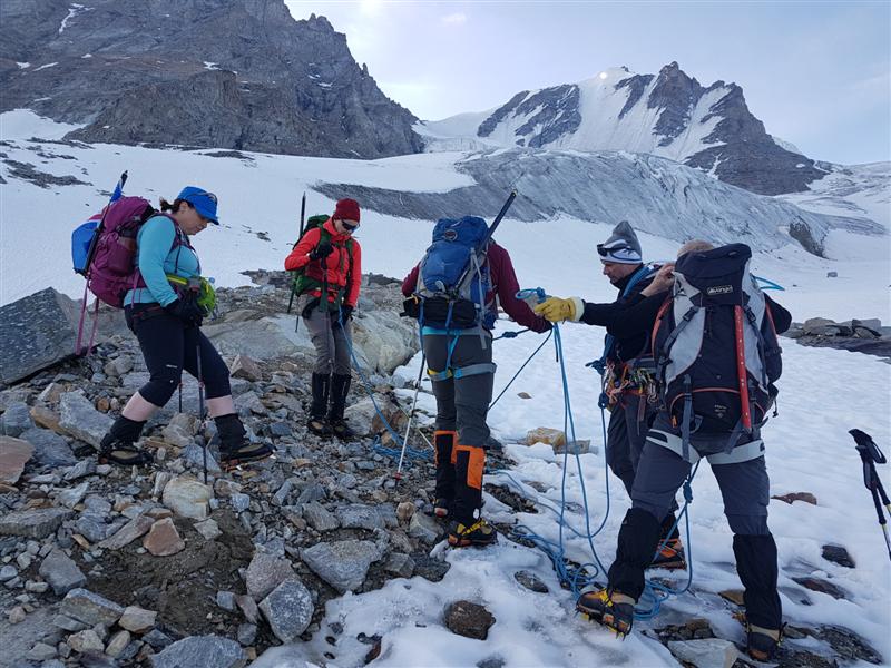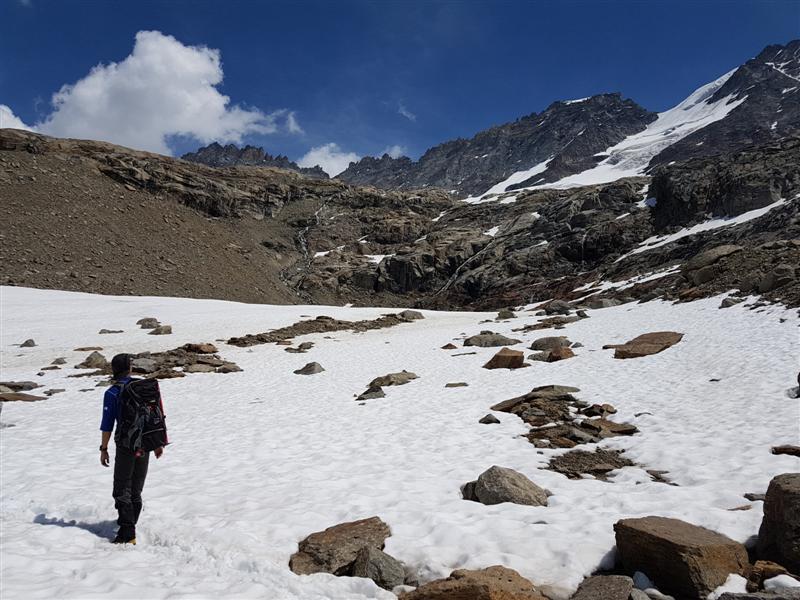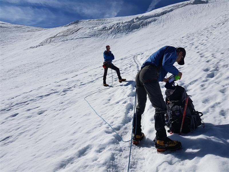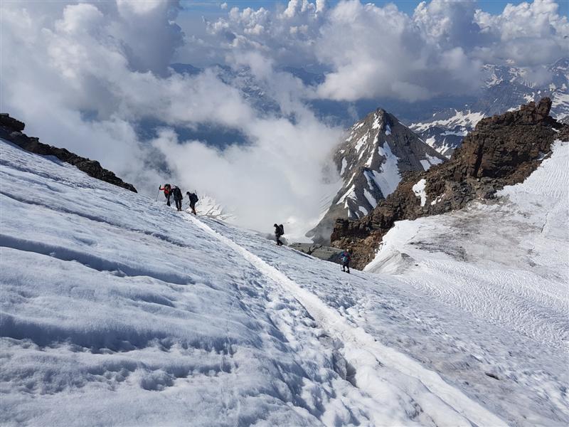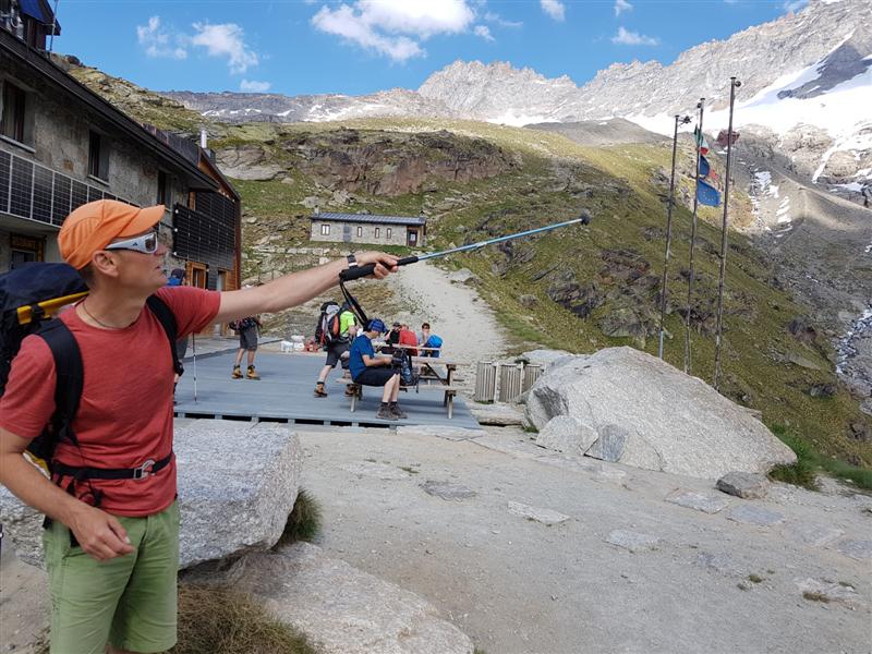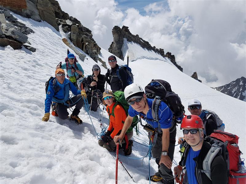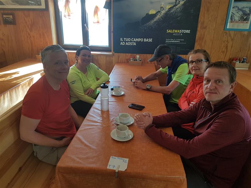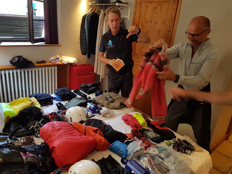 John Taylor lýsti ástandinu fyrir okkur á gönguleiðinni upp á Mont Blanc... það var ekki möguleiki að fara á þann hvíta... hæsta tind Vestur-Evrópu... og hann sýndi þetta vel með myndum af colour du... þar sem nánast enginn snjór eru í því og grjóthrunið viðvarandi... ekki hægt að tryggja öryggi á þessari leið og því var ákveðið að gera eitthvað annað á morgun og stefna á Monte Rosa sem sárabót hina dagana...
