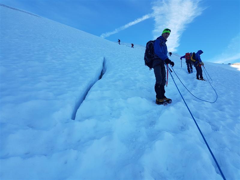 Marið eftir sprungufallið... farið að leka út og var lengi að fara en samt ekki... tók nokkrar vikur... ------------------------------- Framhald í hluta 2 af 3 þar sem þrjár erfiðustu áskoranir ferðarinnar voru samanþjappaðar í eina göngu upp á Aiguille du Midi... ... og í þriðja ferðahluta er gangan á Monte Rosa með viðkomu í skála sem skákaði öllum sem við höfum heimsótt...