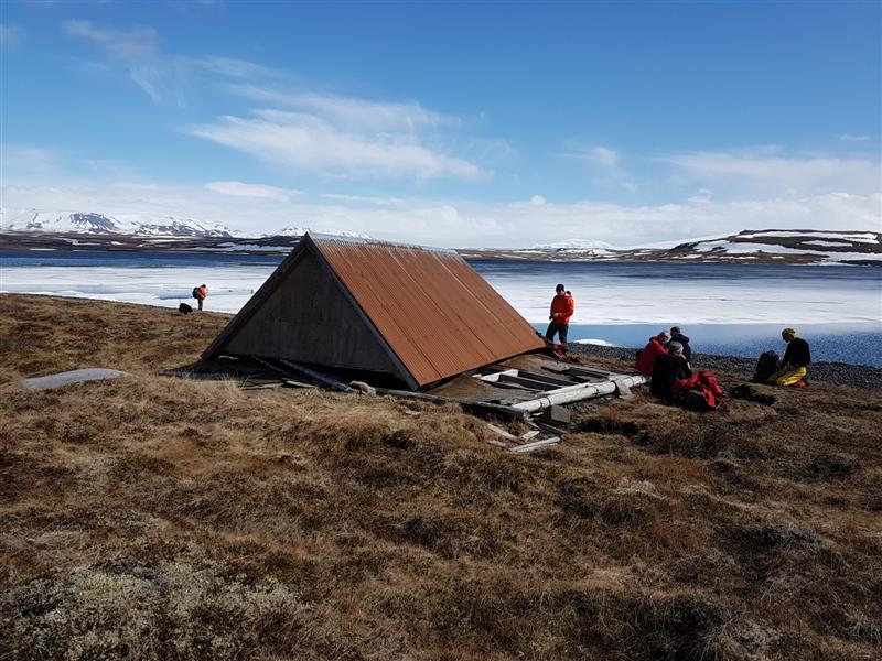 Við sáum glitta í kofa við vatnið að stefndum þangað...