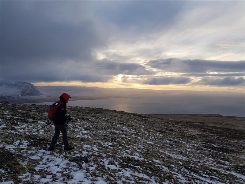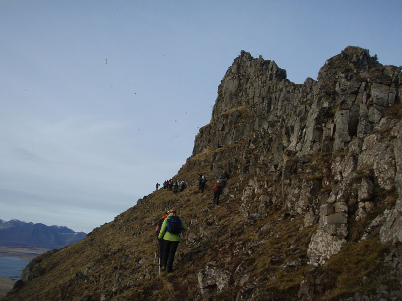 Sjórinn þarna niðri... ekki sjálfgefið að fá svona fjallgöngu á þessum árstíma...