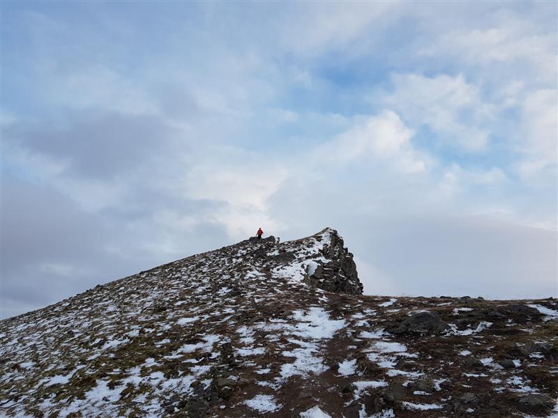 Það var ekki sjens að borða nesti á þessum tindi... allt fjúkandi hvasst og kalt...