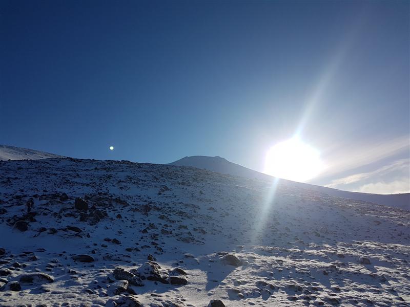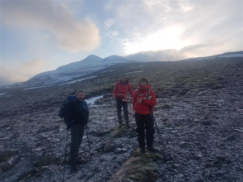 Eftir sporagerðina var þetta rösklega farið í hliðarhalla að hryggjarleið uppgöngunnar