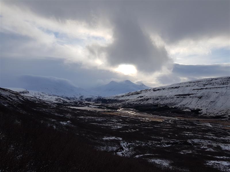 Hér fórum við að sjá til fjalla austan megin og Hvalfellið reis úr heiðinni ásamt Botnssúlunum...