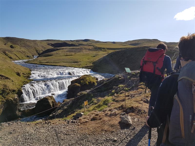 Leiðin upp með Skógá er vel við haldið og möl í slóðanum langa leið upp áður en grasbörðin taka við...