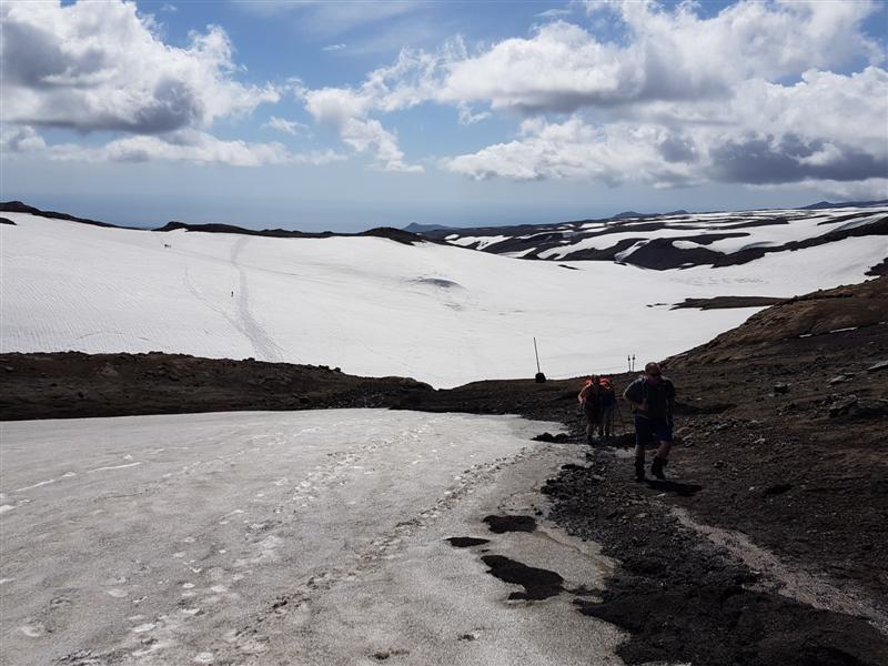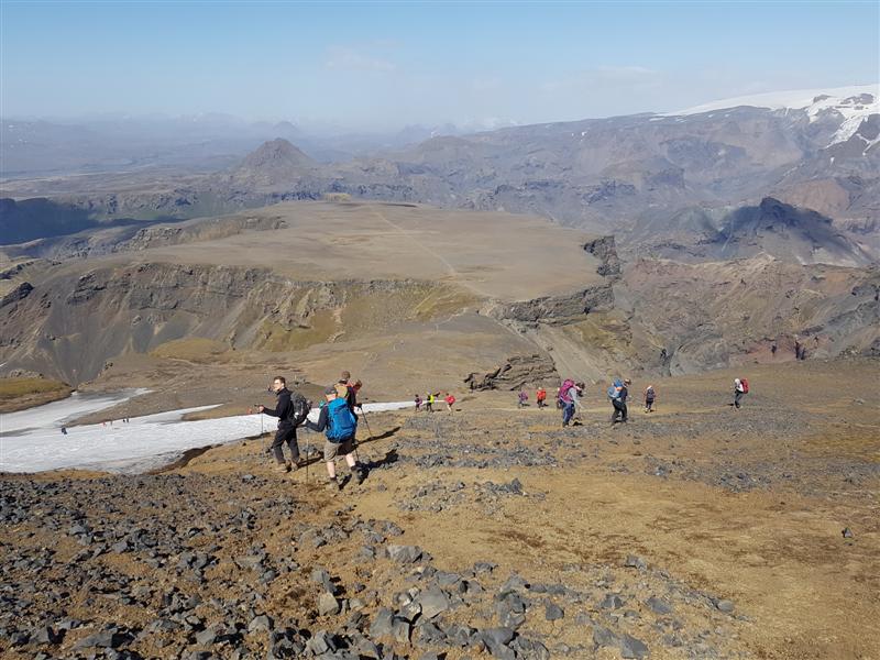 Litið til baka yfir Fimmvörðuhálsinn sjálfan þaðan sem við komum að Magna...