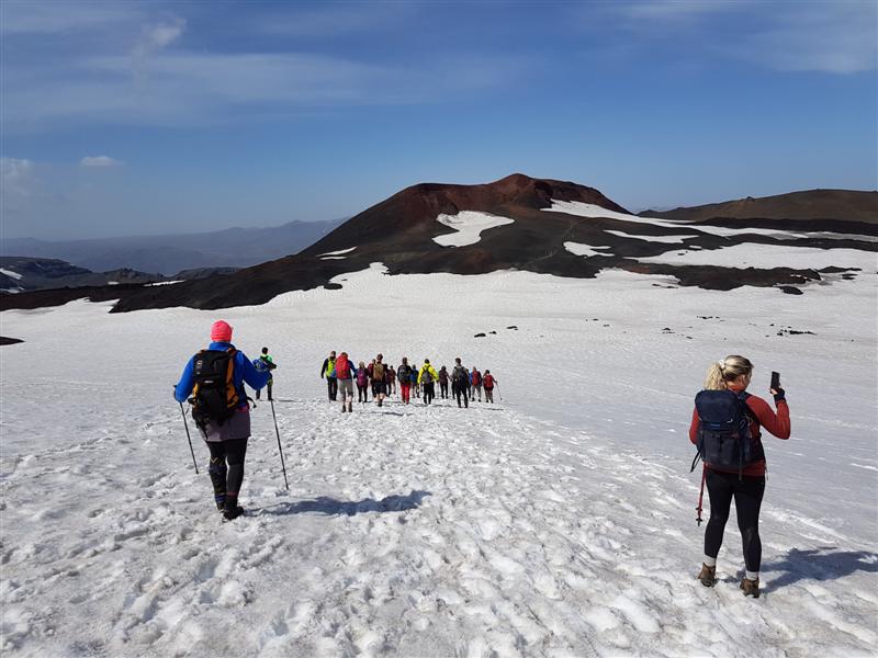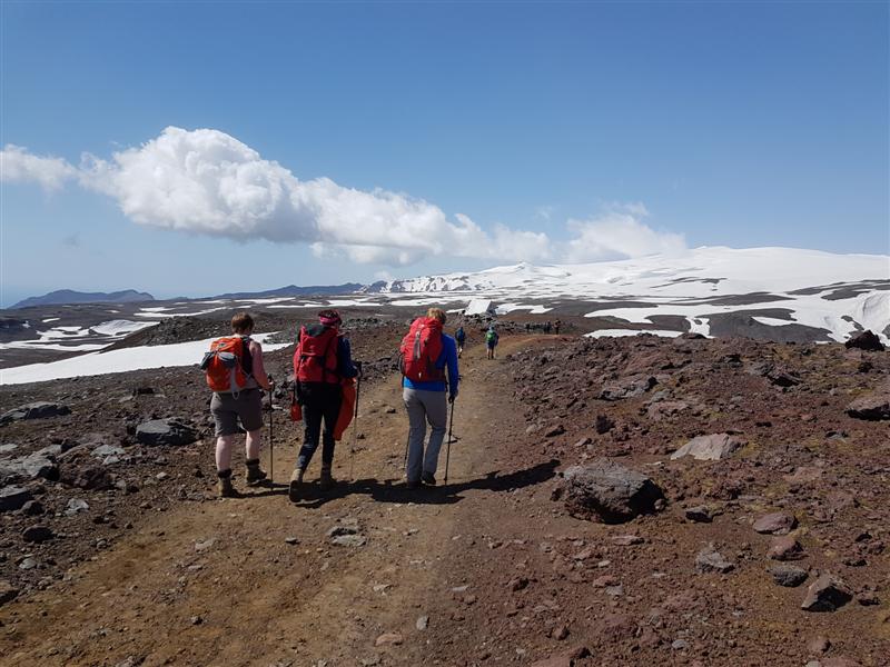 Mýrdalsjökull breiðir vel úr sér austan megin við gönguleiðina og er sláandi víðfeðmur þegar að er gáð...