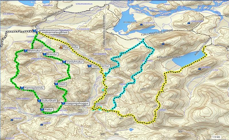 Frá Kirkjufellsvatni var farið inn innra skarðið áleiðis á Hábarm...
