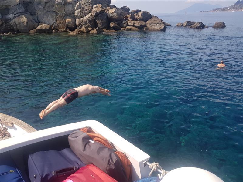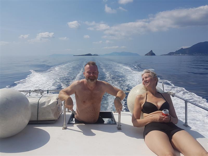Ķ staš žess aš ganga nśna į tind Stromboli var sigling til Panarea į dagskrįnni žar sem viš ętlušum aš toppa žį eyju...