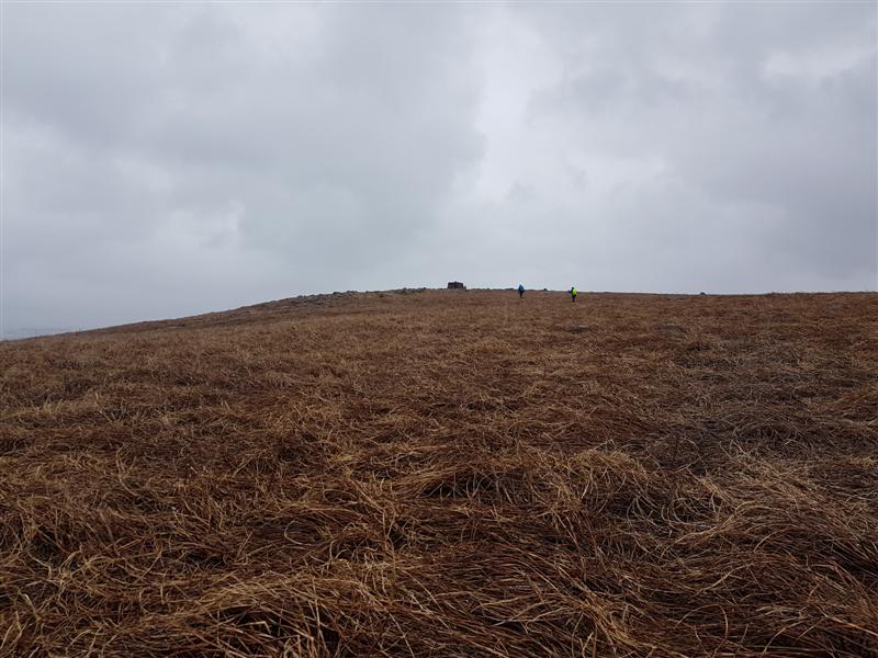 ... en þetta leið að lokum og brátt sáum við glitta í hleðsluna á tindi Ásfjalls...
